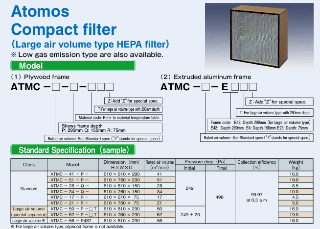 Atomos Compact filter (Large air volume type HEPA filter)